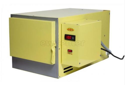 Печь сушки и прокалки электродов ПСПЭ 40/400.01M имеет цифровую индикацию и реле времени. Основным предназначением такой печи является сушка и прокалка электродов для сварки в стационарных условиях, а так же передвижных сварочных постах. В следствие использования ТЭНов удалось повысить рабочий ресурс печи. Нагревательный элемент легко заменить при проведении ремонтных работ. Используемые ТЭНы отличаются большим сроком службы, а оптимальное размещение нагревательных элементов внутри камеры повышает характеристики теплоизоляции. Характеристики: Номинальное напряжение 220 В Номинальная мощность 3,0 кВт Номинальная температура в рабочем пространстве 400°С Предел настройки терморегулятора 50-400°С Время разогрева до номинальной температуры с полной загрузкой 90 мин Единовременная загрузка электропечи 40 кг Размеры рабочего пространства 300×200×550 мм Габаритные размеры 545×400×710 мм Вес изделия 45 кг Особенности Цифровая индикация, реле времени Гарантийный срок 1 год